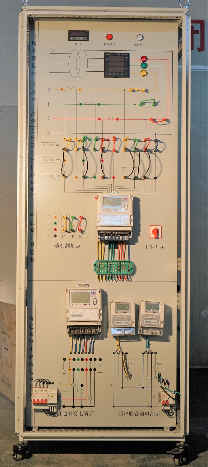 該實(shí)訓(xùn)系統(tǒng)將結(jié)合國(guó)內(nèi)已知的竊電手段,融合專變智能終端、集中器、高壓電流無(wú)線采集裝置等相互配合來營(yíng)造貼近實(shí)際生產(chǎn)現(xiàn)場(chǎng)化的綜合性計(jì)量裝置平臺(tái)。以現(xiàn)場(chǎng)典型的竊電方式融合高科技竊電方式進(jìn)行模擬仿真演示一次、二次及高科技竊電方式,以提升稽查本領(lǐng)。系統(tǒng)設(shè)計(jì)多個(gè)計(jì)量監(jiān)測(cè)點(diǎn)可實(shí)時(shí)監(jiān)測(cè)各點(diǎn)數(shù)據(jù),利用智能電能表、專變智能終端、集中器、高壓電流無(wú)線采集裝置及其附屬系統(tǒng)實(shí)現(xiàn)對(duì)重點(diǎn)用戶的遠(yuǎn)程稽查。采用實(shí)景化動(dòng)態(tài)竊電與防竊電設(shè)計(jì),再現(xiàn)與現(xiàn)場(chǎng)高度吻合的竊電與防竊電場(chǎng)景,實(shí)現(xiàn)對(duì)多種竊電手段的研究和實(shí)操式培訓(xùn)、鑒定、競(jìng)賽。
