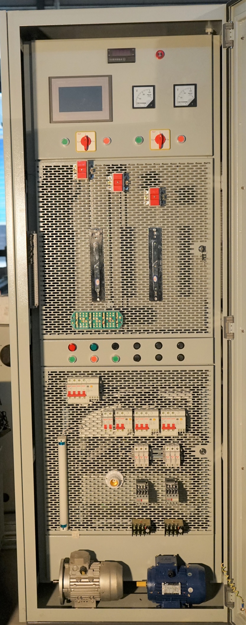 低壓多功能配線培訓(xùn)柜可進(jìn)行低壓配電柜一次設(shè)備安裝配線,及剩余電流保護(hù)器的安裝配線的實(shí)訓(xùn)項(xiàng)目,主要設(shè)備有刀開關(guān)以及電流和電壓指示儀表、按鈕開關(guān)指示燈等;